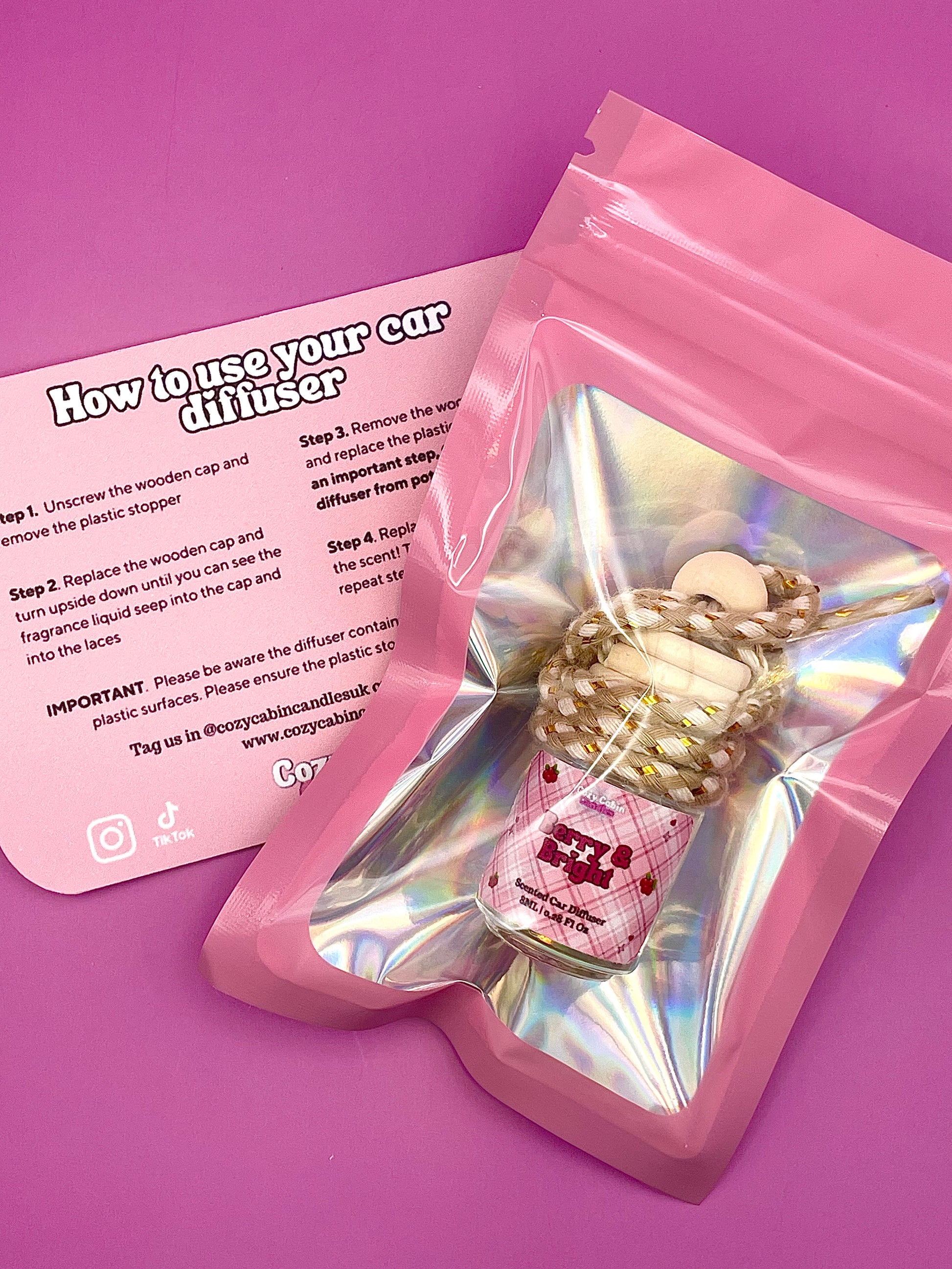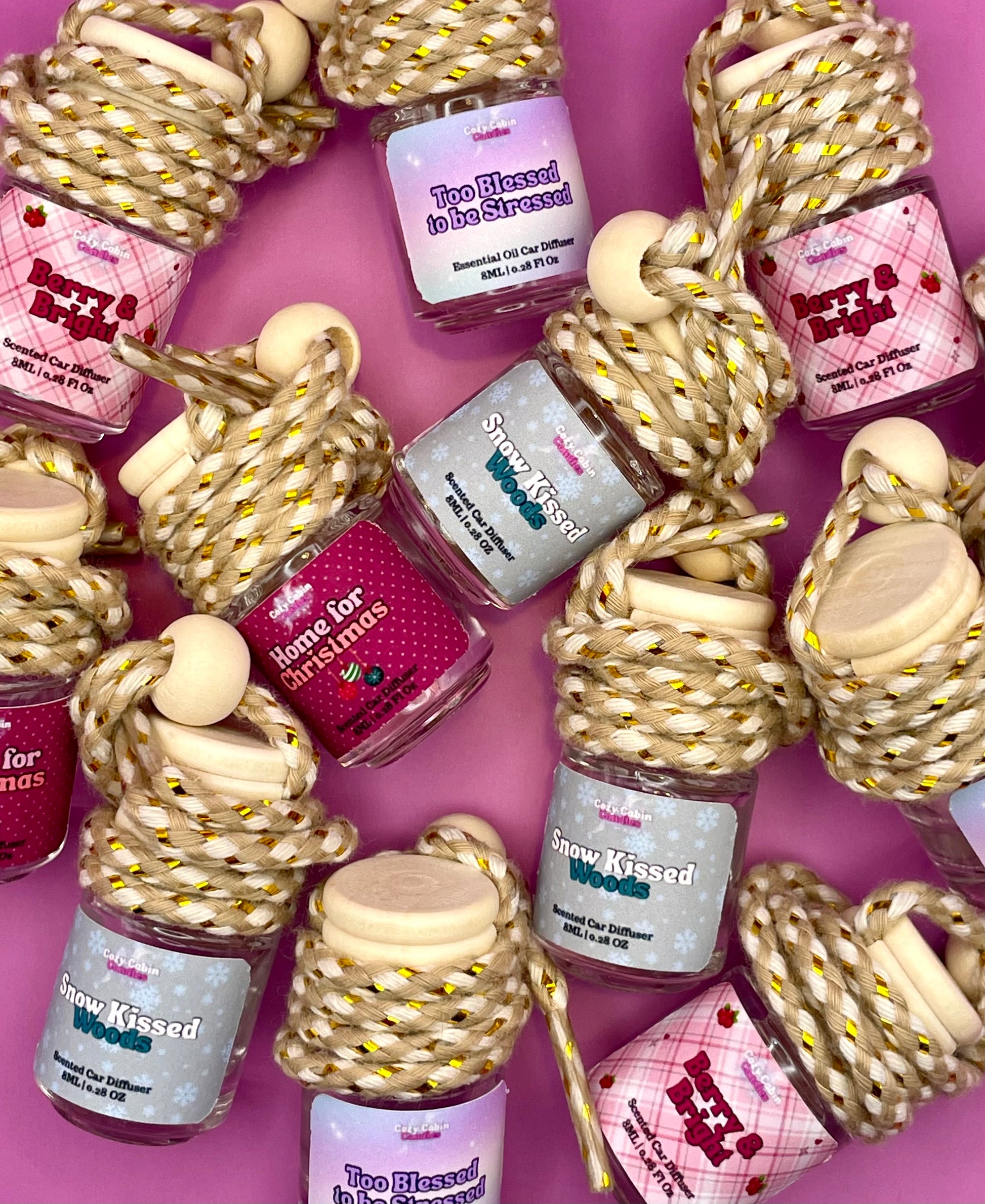 Too Blessed to Be Stressed – A cheerful little blend of essential and natural oils that turns your car into a mini spa on wheels. Tie it up, hit the road, and let uplifting vibes chase away traffic tantrums! Matching scent 40 hour candle available housed in a frosted white 30cl jar.